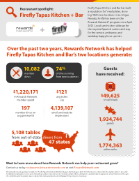 In this restaurant spotlight, we showcase how restaurants like yours can benefit from Rewards Network. To support your business’ success and growth, we offer a variety of solutions, such as flexible funding options and marketing services. From August 2023 to August 2025, Rewards Network helped Firefly Tapas Kitchen and Bar’s two locations generate: