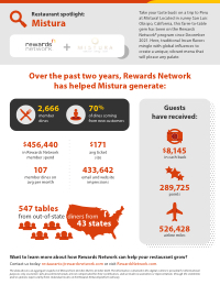 In this restaurant spotlight, we showcase how restaurants like yours can benefit from Rewards Network. To support your business’ success and growth, we offer a variety of solutions, such as flexible funding options and marketing services. From October 2023 to October 2025, Rewards Network helped Mistura generate: